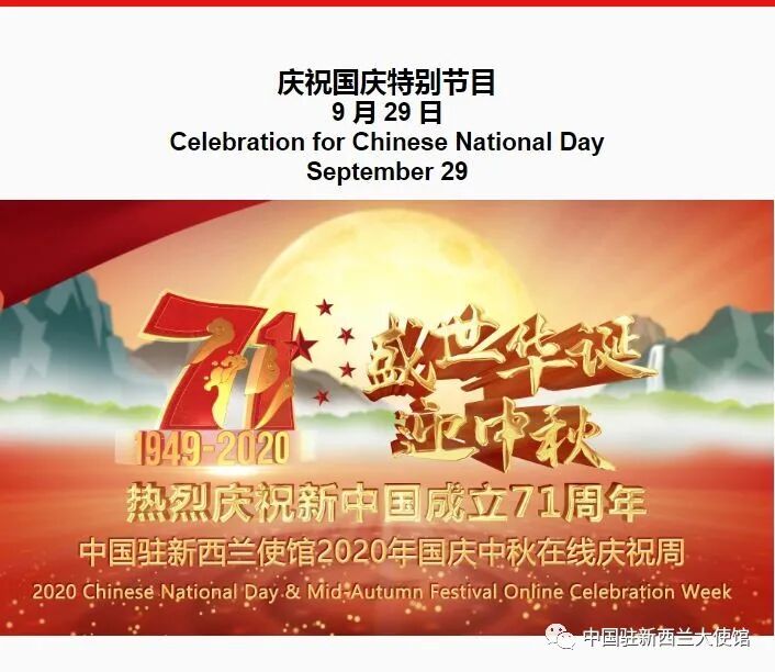 中国驻新西兰使馆2020年国庆中秋在线庆祝活动周